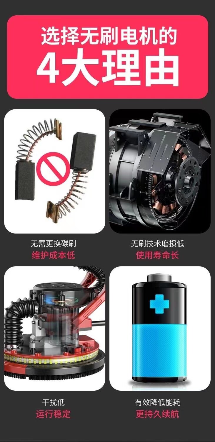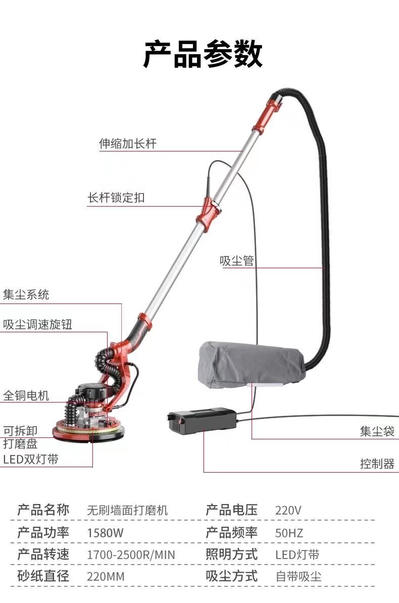 Бесщеточная шлифовальная машина с длинным полюсом, машина для наждачной бумаги, машина для наждачной бумаги, полировка стен, шлифовка артефактов, самовсасывающий и без пыли
