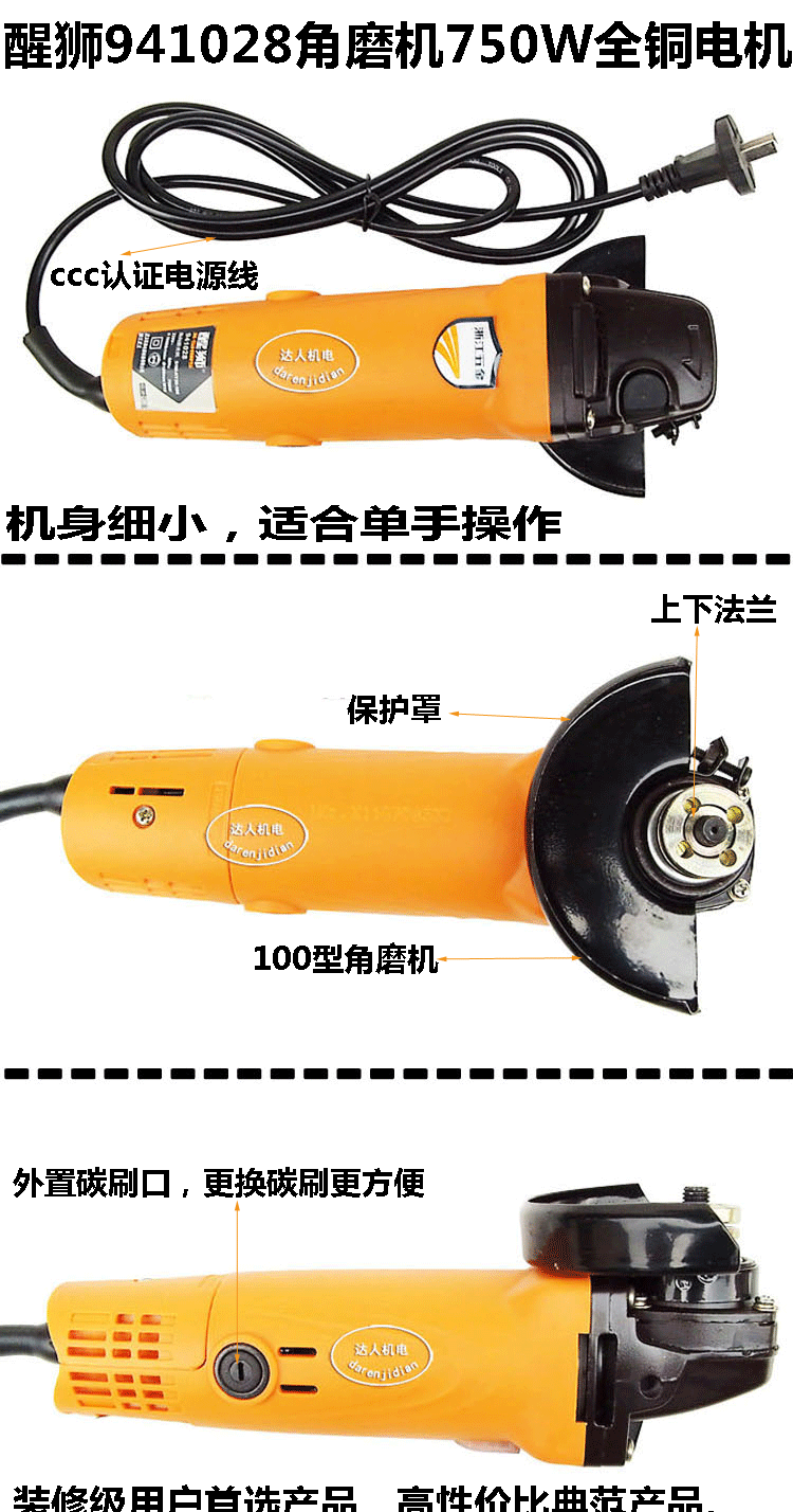 醒狮 941028 -й угловой шлифовальный станок чистый медный двигатель класс класс много -функция 100 небольших электрических углов броска для польской машины