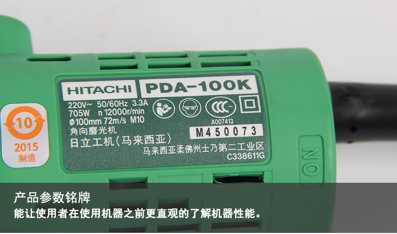Hitachi Corner Grinding Machine Industry PDA100K угловой обработок полировочной машины Полированная электрическая шлифовальная машина Домохозяйство 220 В шлифовальная машина