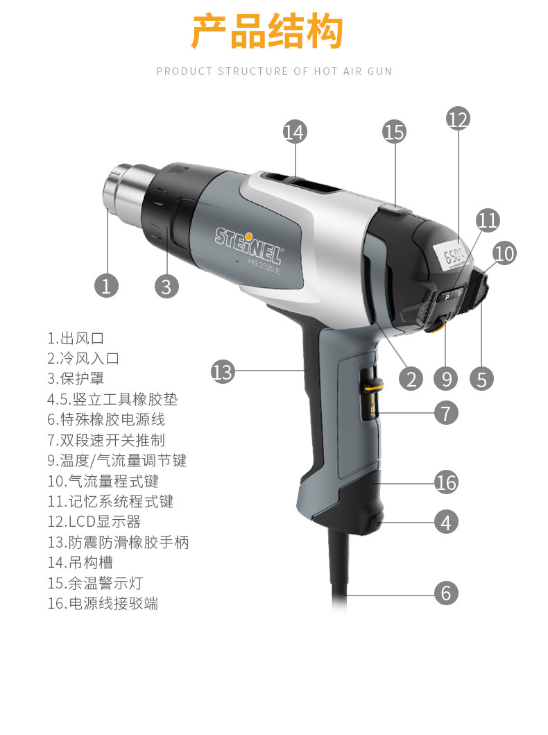 Немецкий Steinel Импортированное количество теплового воздушного пистолета температура технического обслуживания -Осущные пистолеты, пленка промышленная пластика на гриле на гриле.