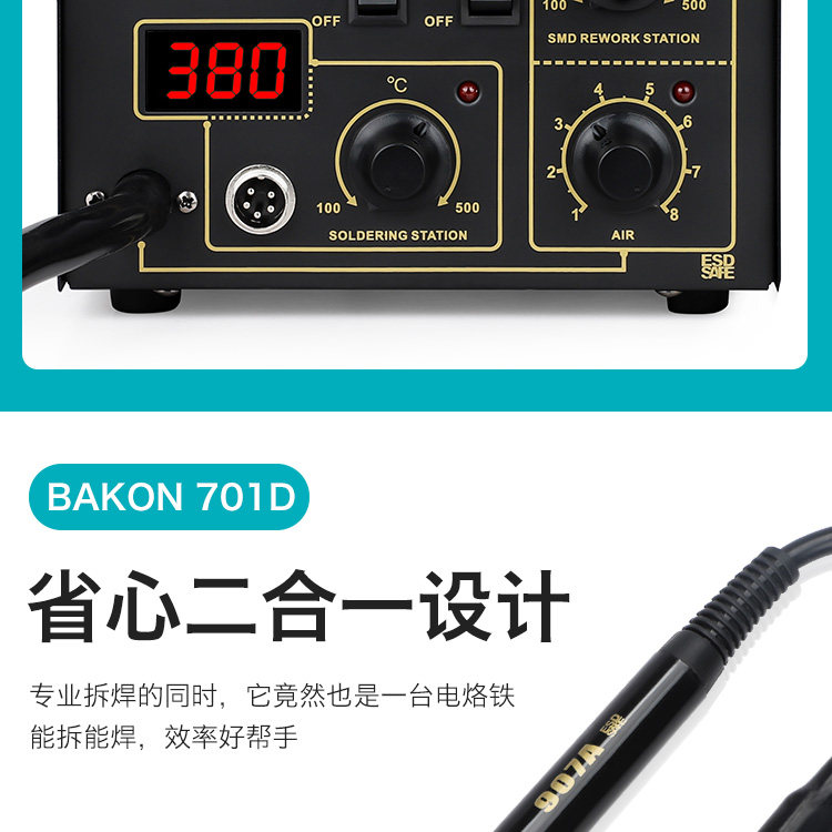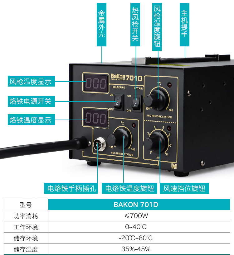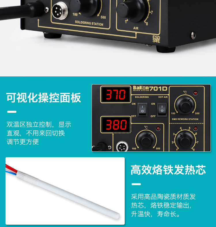 Белая платформа сварки с горячим воздушным пистолетом Двух -один BK701D Электронный ремонт телефона Постоянный температурный