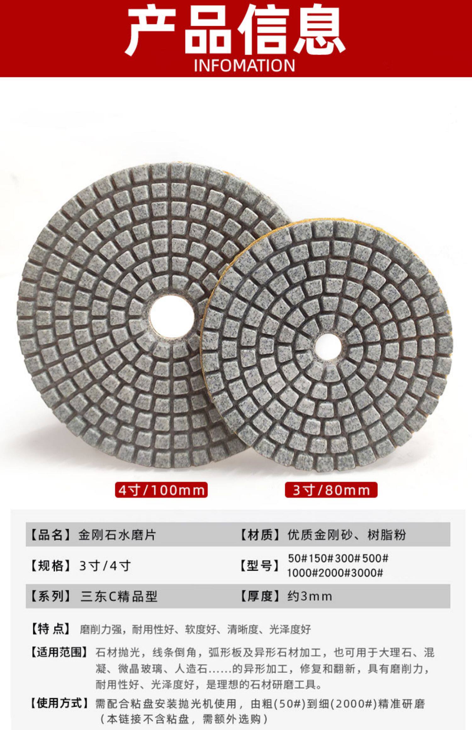 Сандонг C Водяная мельница Гранит нефритовой мрамор 3 -дюймовый/4 -дюймовый алмаз каменная мельница для водяной шлифовки таблетки полировки полировки