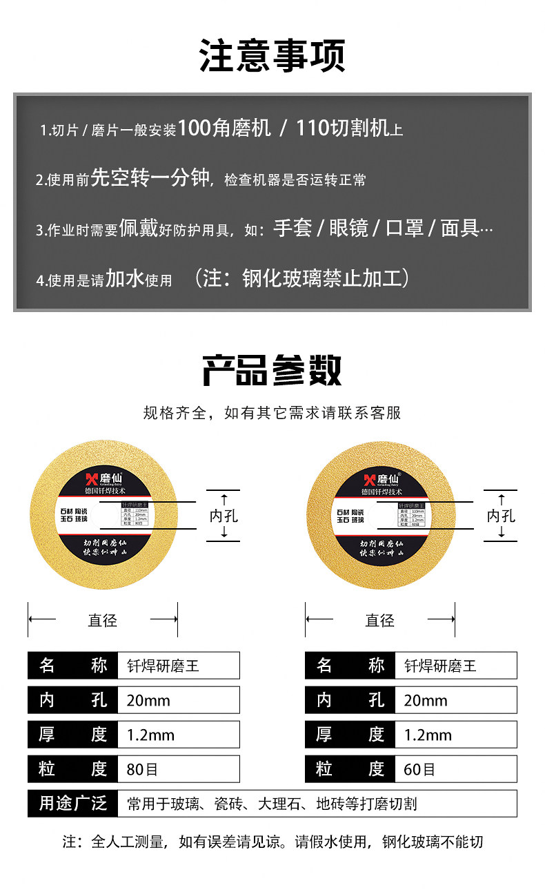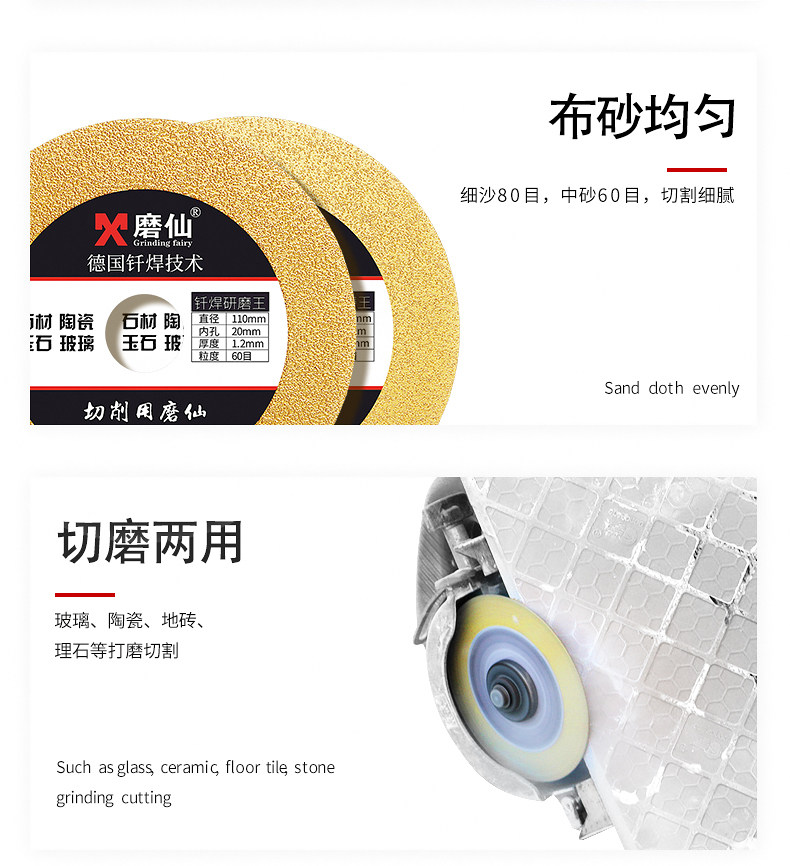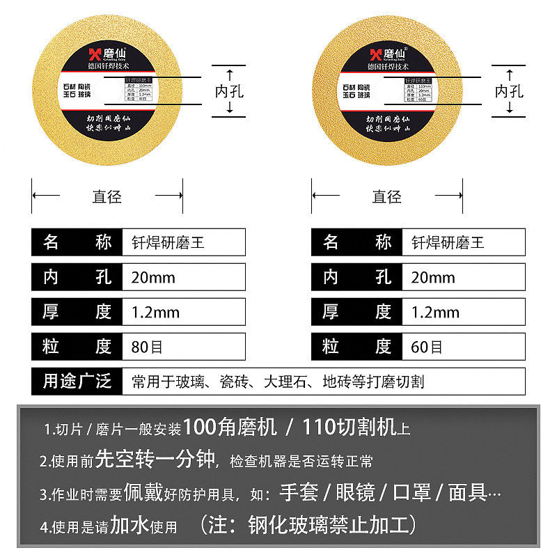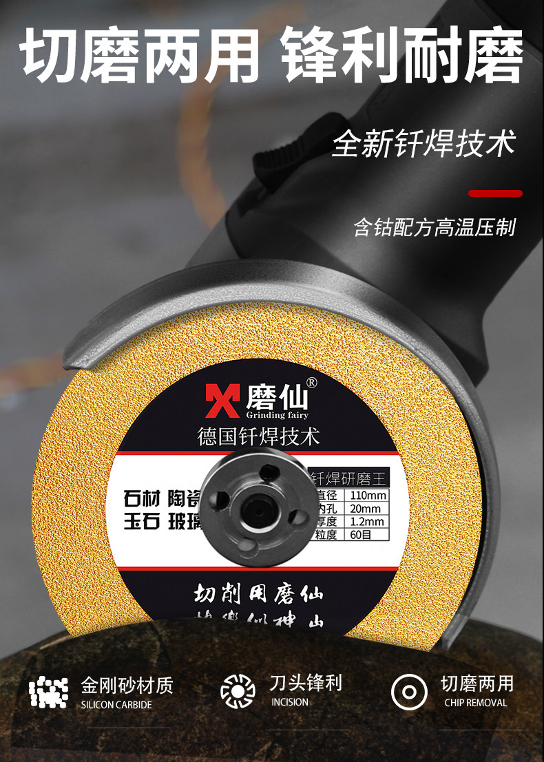 磨仙 Сварная шлифовальная таблетка алмазного шлифования алмазной пила кусок нефритового стекла Ультра -типичные плитки и швейные ломтики