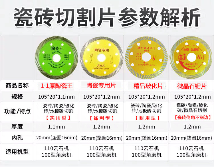 Рутья плитки ломтики облачный камень угловой шлифовальный лезвие лезвие керамическое витрифицированное плиточное сухое ультра -тетистые беззубые пилочные таблетки