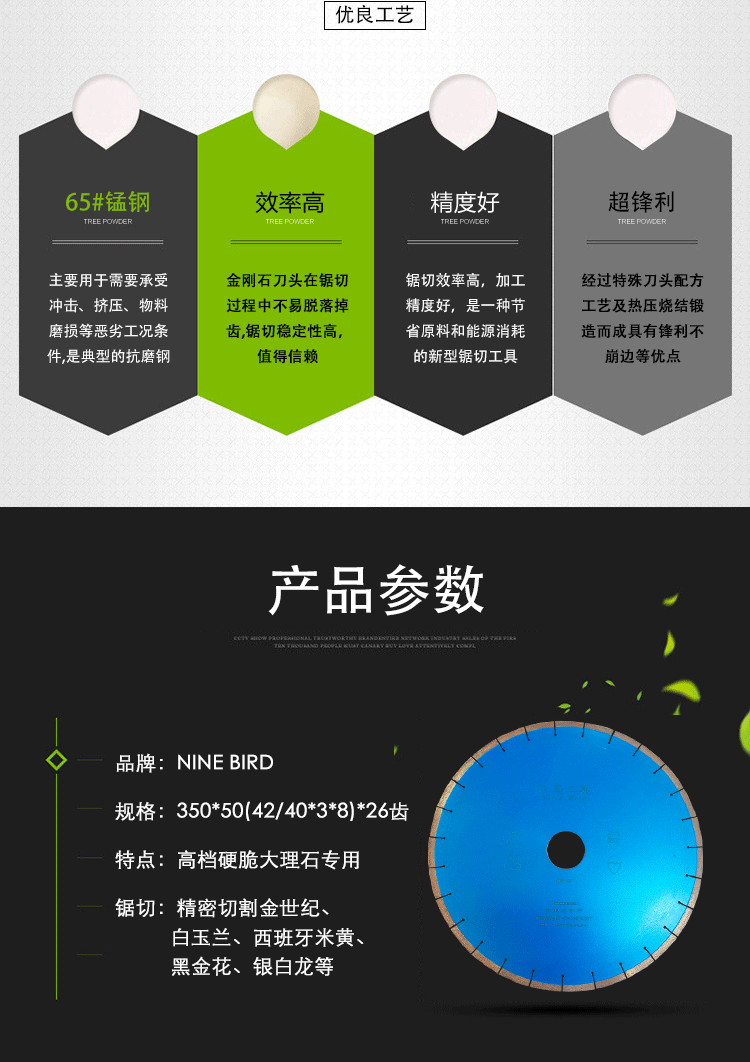 | Цвет: | 350 Желто -отверстие мраморная пиловая лезвия, 350 Blue Small Hole Marble Special |