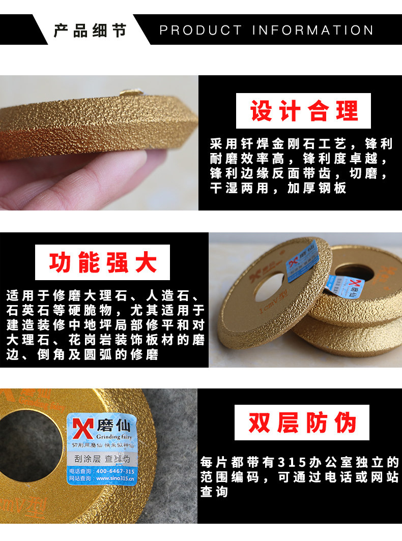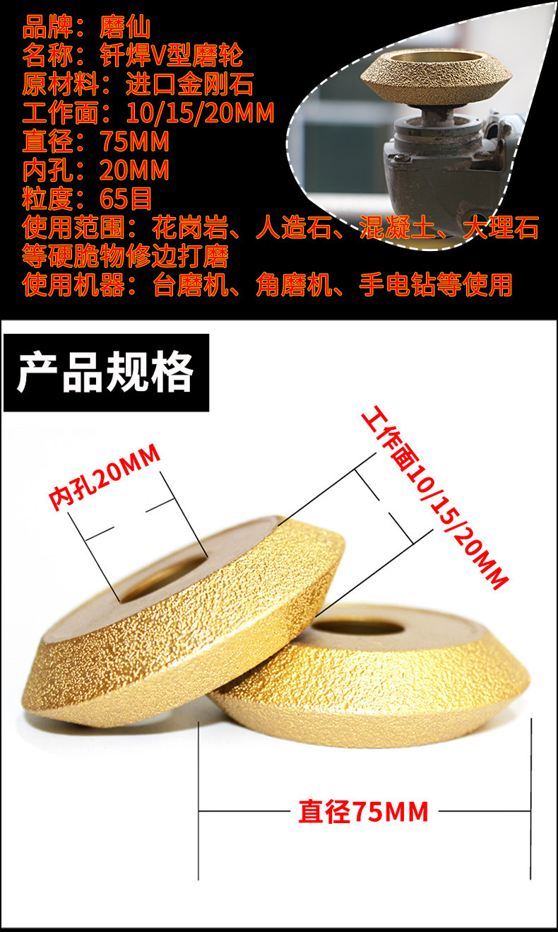 磨仙 轮 Сваренная V -обрабатывающая шлифовальная шлифовальная шлифовальная шлифовальная машина с полукруглым шлифовальным краем колеса Камень твердый хрустящий граница V Wing Wing без коллапса