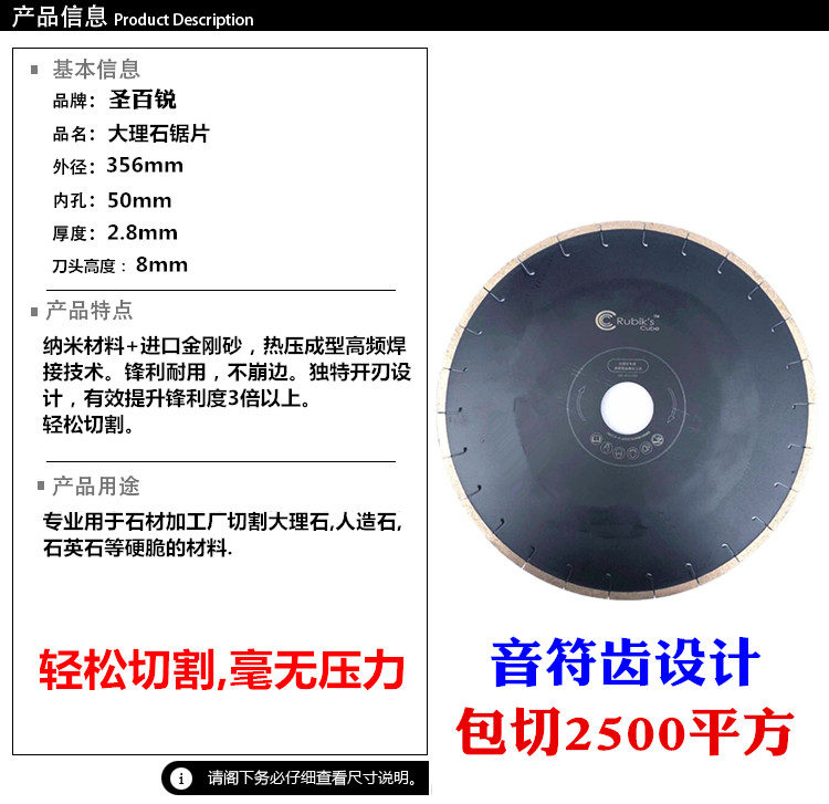 - Диаметр 350 зубьев, мраморная пила, резка 2500 квадратных метров.