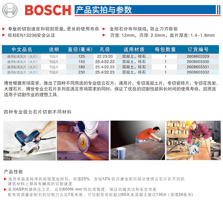 德国博世 7-дюймовый 180-миллиметровый алмазный мраморный чешуйчатый мраморный бетонный цемент Универсальный режущий пятно.