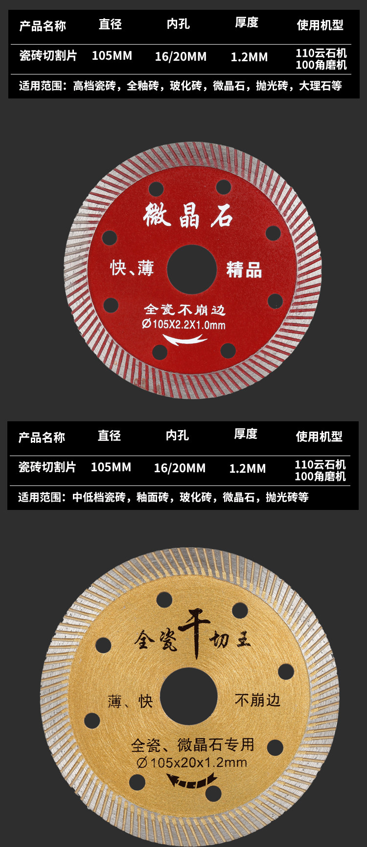 Ручка плитки срезы витрифицированная плитка Ультра -тщательно сухой специальная керамическая алмазная алмазная пила с бриллиантовыми пилами Угловая шлифовальная машина