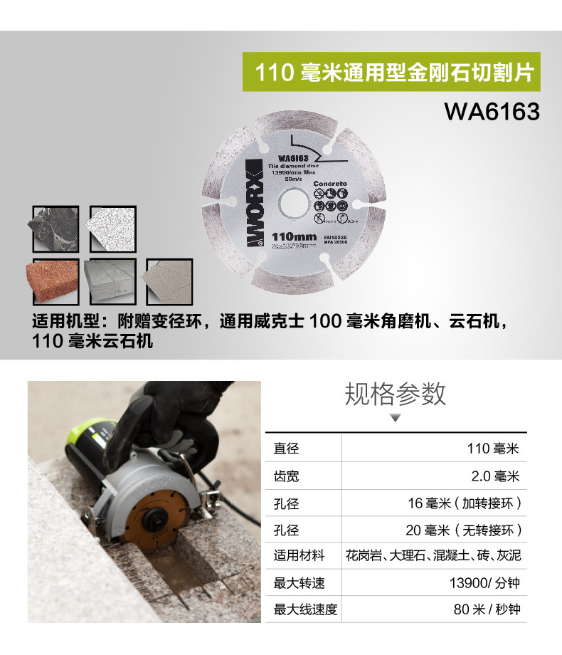 | Цвет: | WA6160 Турбопическая витрификация кирпичная пила таблетка, WA6161 Каменная пила таблетка, WA6162 Бетонная пила лезвия, WA6163 King Kong Stone Saw |