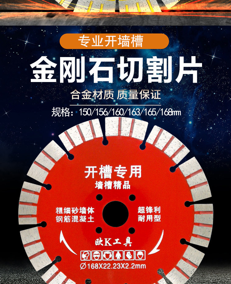 Перелоть таблетка 156 угловой шлифовальной машины Бетонная режущая лист 150 стена канавки 160 режущий лезвие 168 Алмазная пила таблетка 163