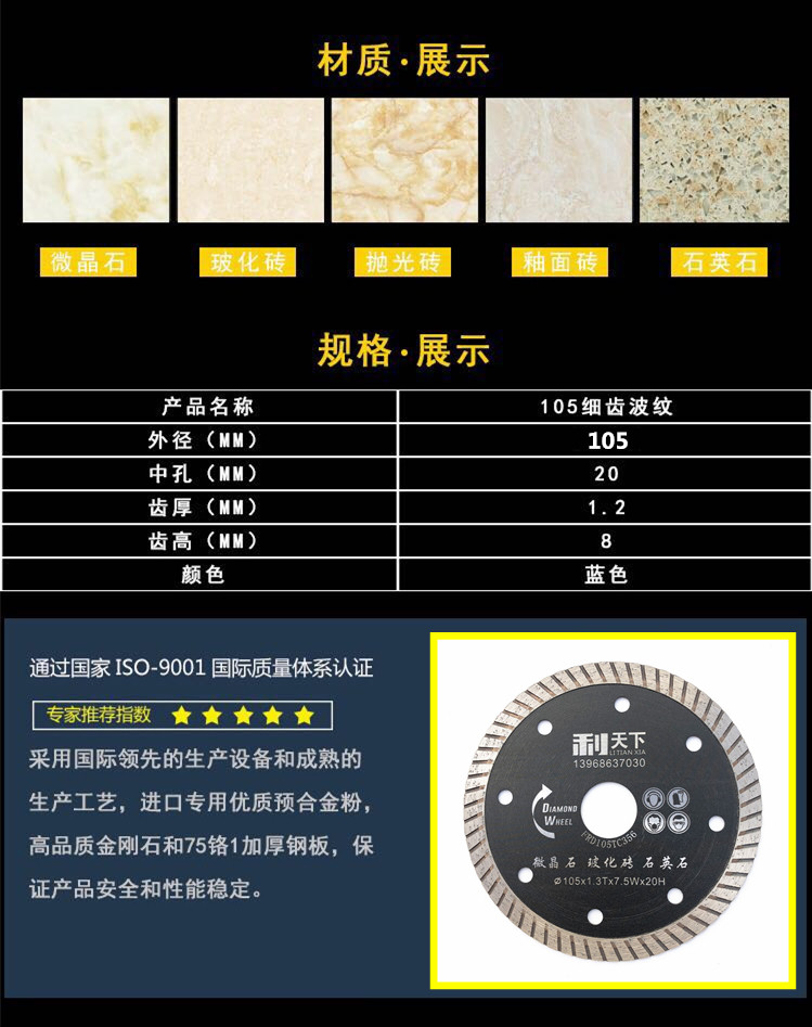 Ультра -тонкая кварцевая каменная плитка таблетка алмазной резки таблет