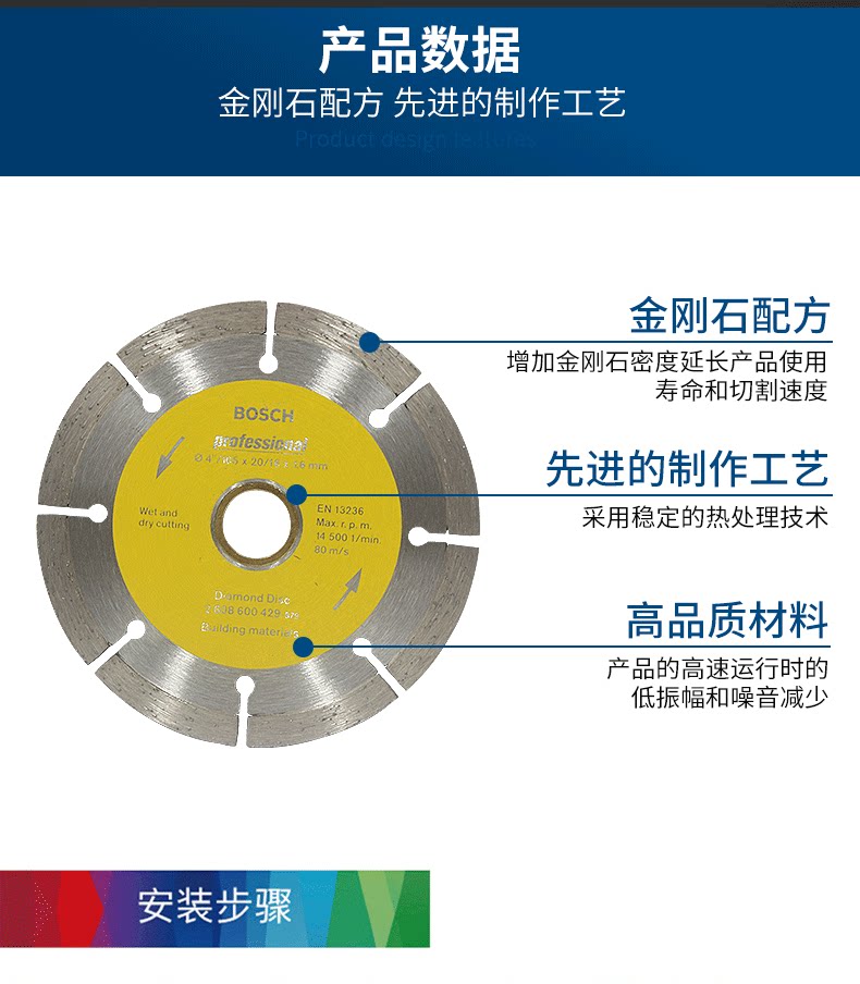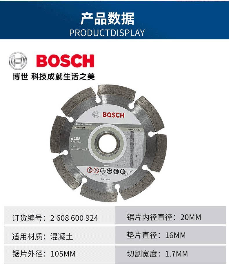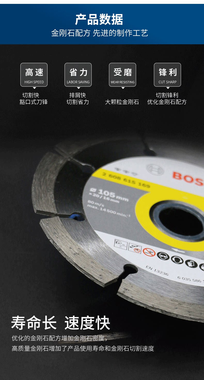 Немецкий аутентичный Bosch Professional Professional Section из бетонного облачного каменного листа 105 мм разреза
