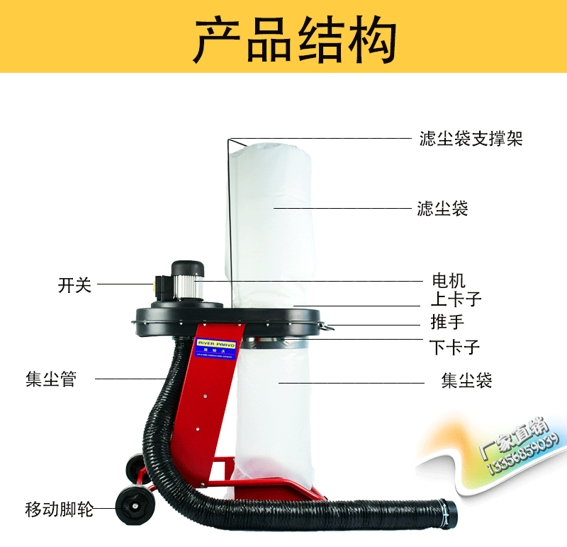 Сумка для пакета коллектор Dust Export RDC100E промышленная деревообрабатывающая пыль, коллекционер, очиститель для стирки автомобиля, высокая мощность, высокая мощность