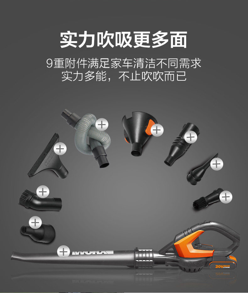 Плетение 20 В литиевая фен с феном WG549E Высокоэтапная пыль Домохозяйка мощная очищающая воздуходувка мощность