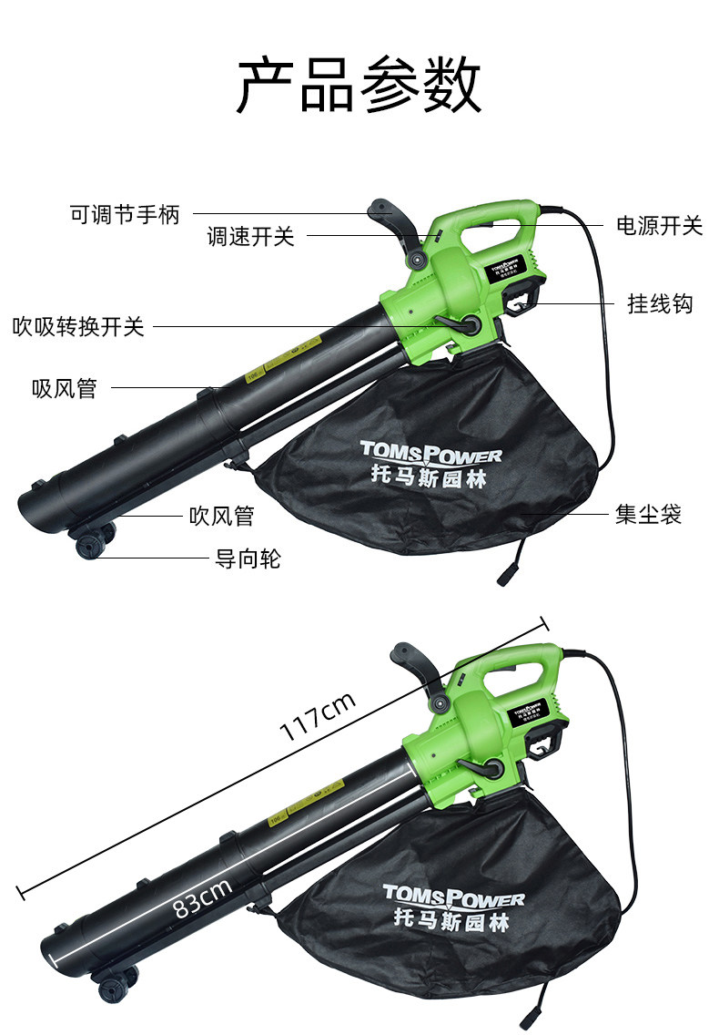 Зарядка промышленная выдувая машина Трехцеполированная маленькая бытовая домохозяйка с высокой силой прозрачной ясеней серые листья и листья