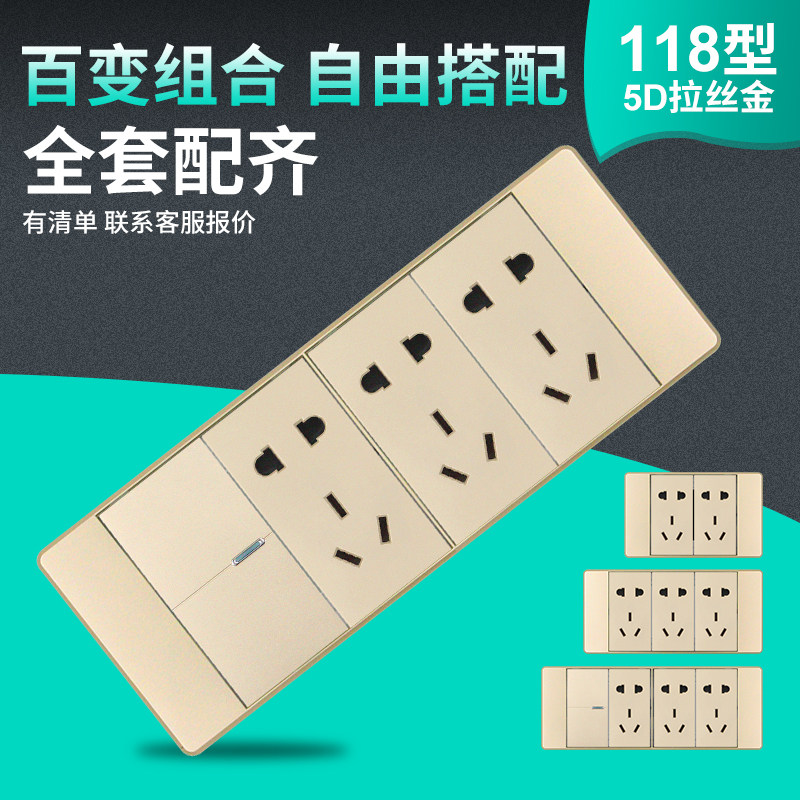 118 типов Переключатель панели панели питания настенных питания шампанского золото четыре открыта One One Fifty -Hole
