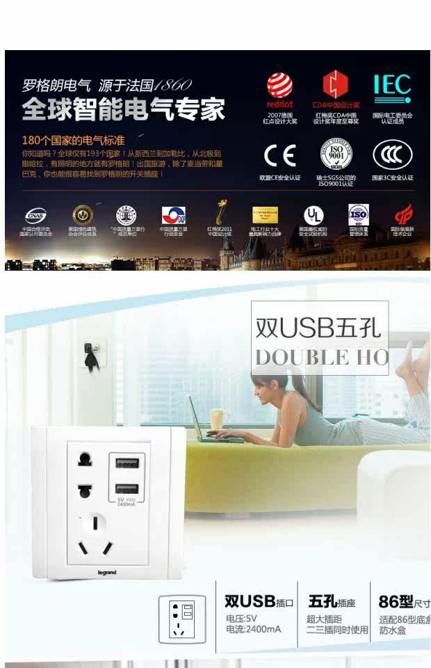 TCL Rogue Switch Spocket, пять -отверстие с USB -пятью гнездями, две три зарядные панели 86 типа 86