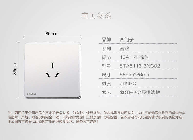 Siemens Switch Spocket Socket Ruizi Series venuine 10a Три -отвернка 3 розетка 86 Wise Wise Spocket