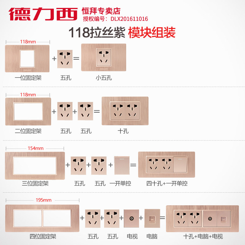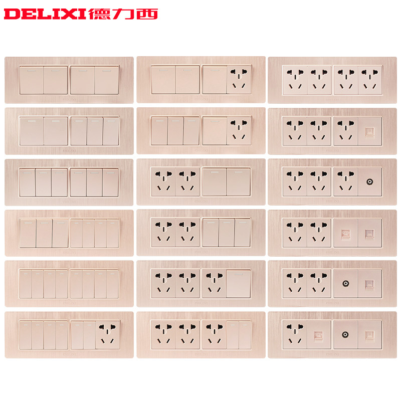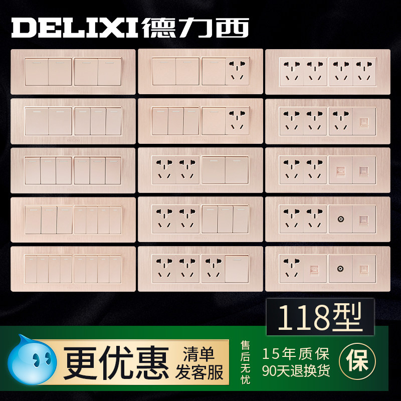 德力西 Тип 118, бытовая четырехпозиционная матовая панель с пятью отверстиями, двенадцать отверстий, 12 отверстий, несколько отверстий, розетка с выключателем