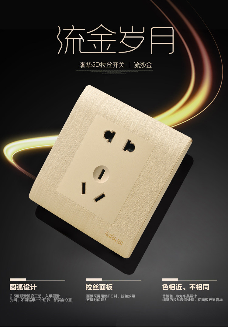Тип 86 настенная панель панели темной установки шампанского Golden Lose Thry Three Fulf 5 -Hole Growe Package Home