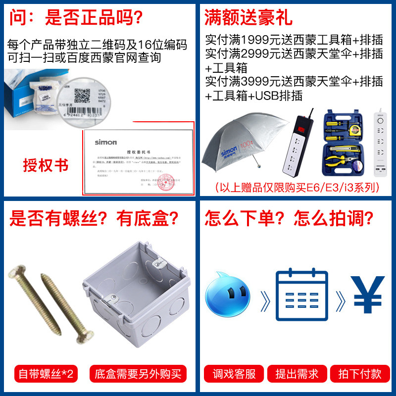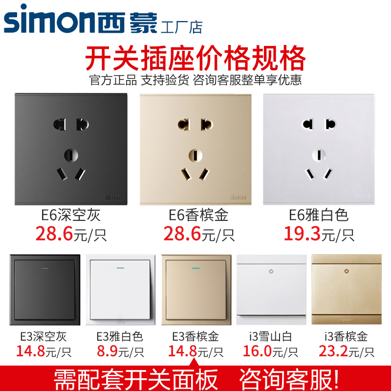 Simon Switch Socket E3 Серия серии Elegant White Home Dark Установка Питания стен 86 Тип с люминесцентной панелью 5 пять отверстий