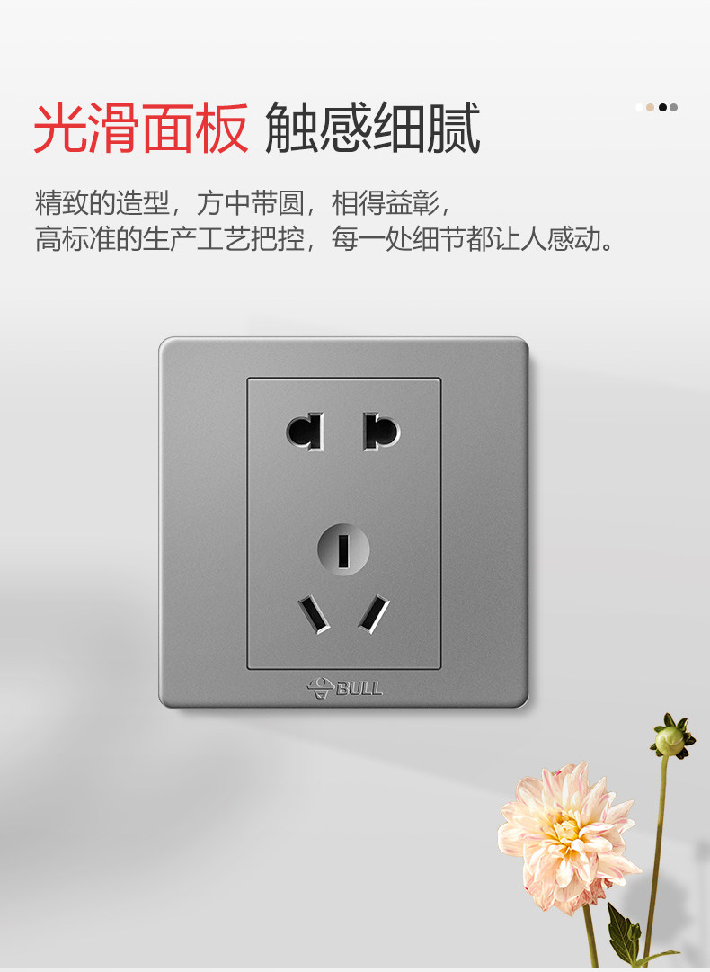 Официальная панель панели Bulls Switch Flagship Grey -Home Home 16a Dark Installing Sweat Sweat Panel Panel Porous Pore