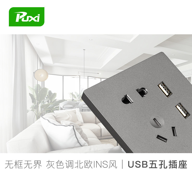 Puxi Grey Docket Panel Panel Panel Band Switch с коммутатором USB Hidden 86 Dual USB -розет