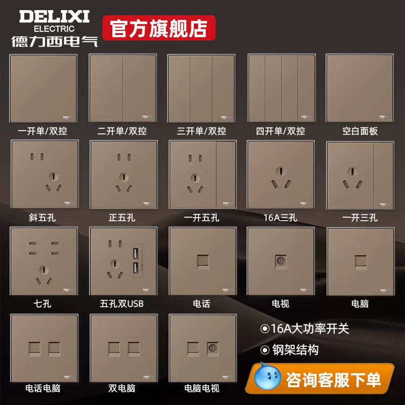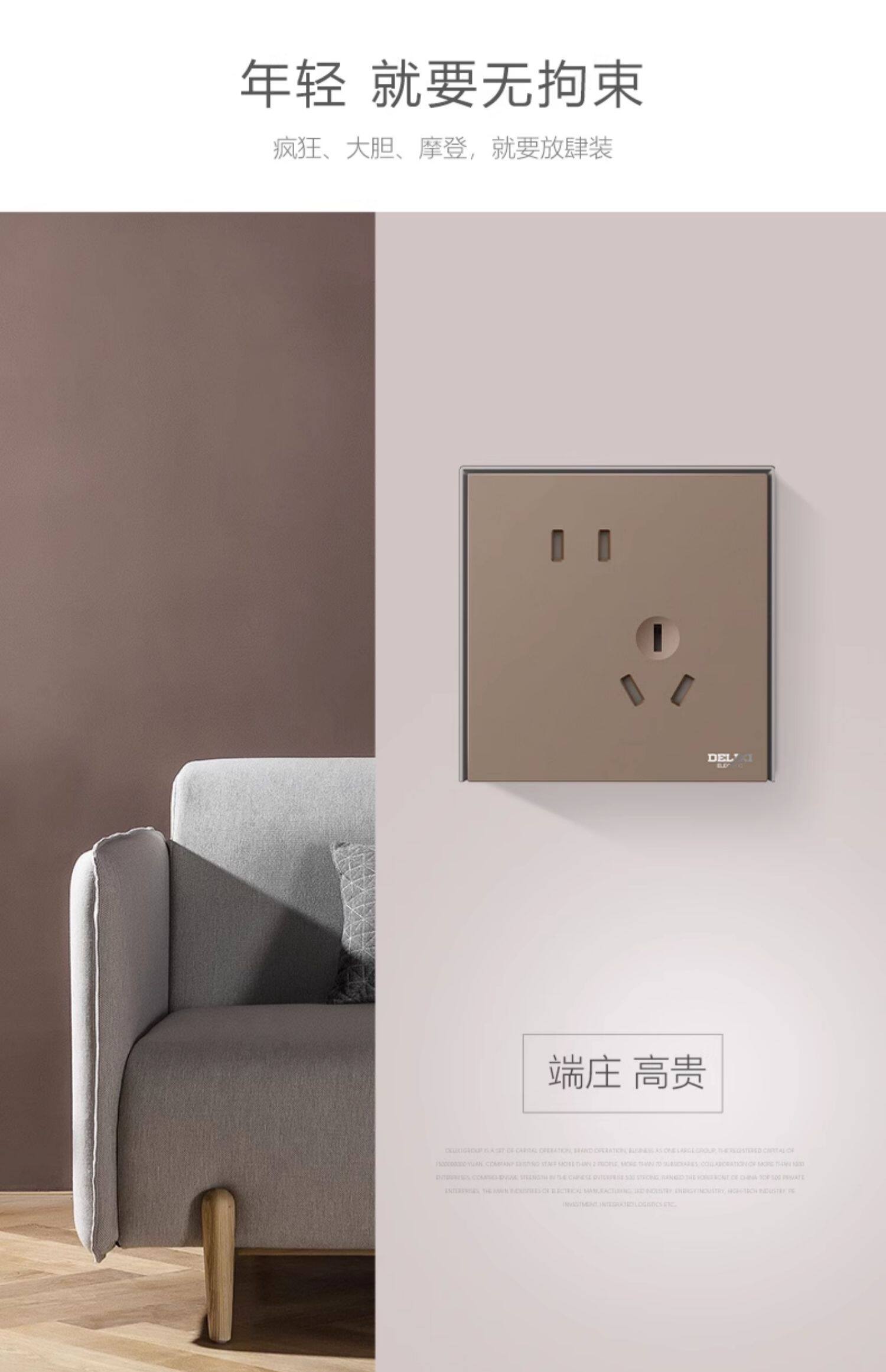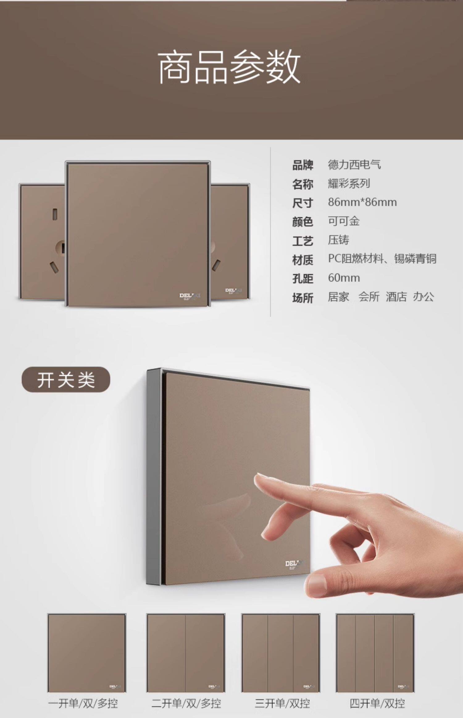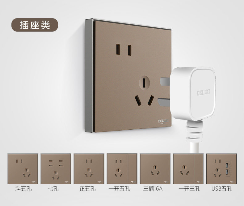 德力西 Переключатель панель мульти-отверстия 86 типа с пятью лунками USB-домохозяйство скрыло 886 какао-золото и серый