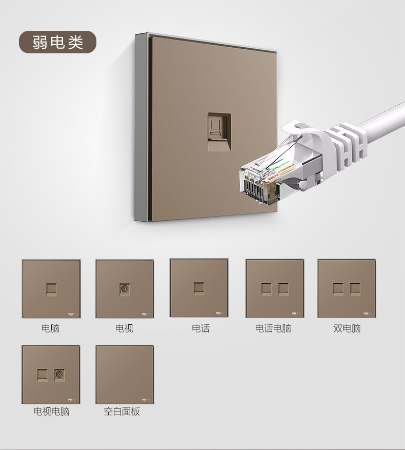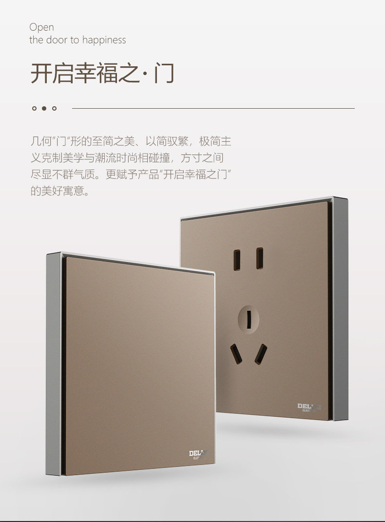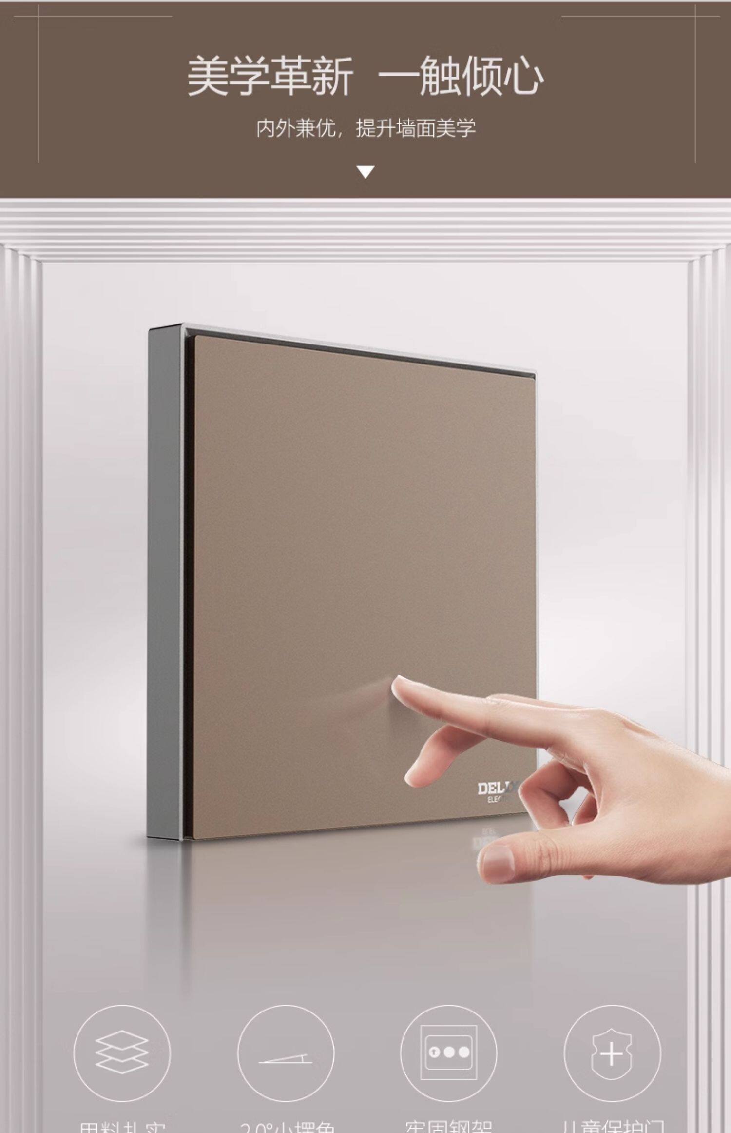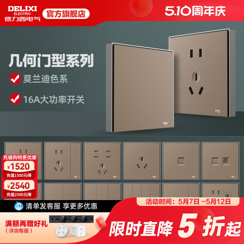 德力西 Переключатель панель мульти-отверстия 86 типа с пятью лунками USB-домохозяйство скрыло 886 какао-золото и серый
