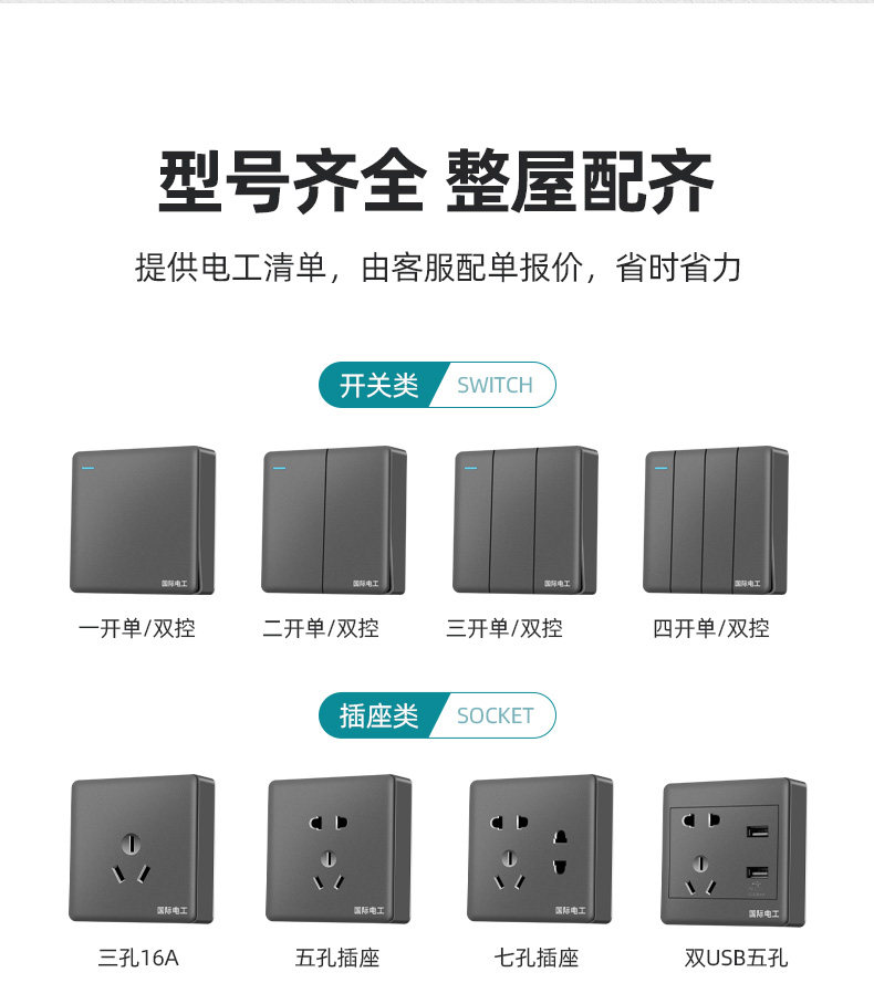Mingjian Ming Line Switch Panel Pole Pole of Homeving Grey 16A Кондиционирование воздуха три штука 10A и десять отверстий