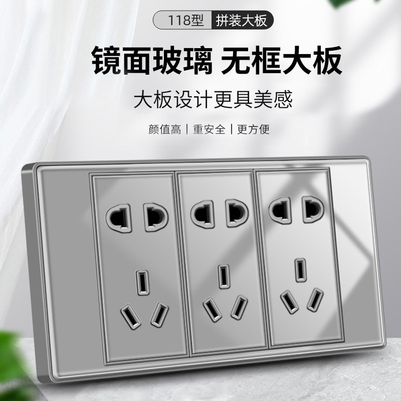 Международный электрический переключатель панель 118 тип серого зеркального стеклянного стекла дома 10 шестьдесят 99 полюсная панель