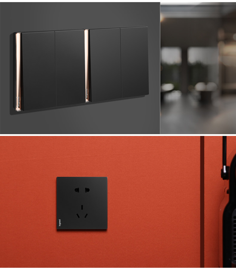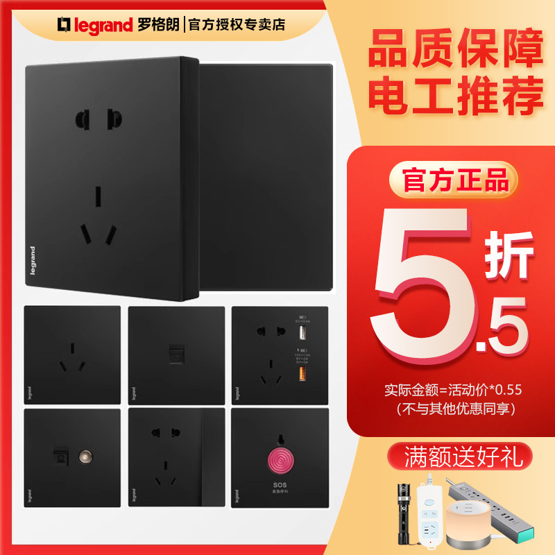 Rog Loglans Переключатель панель yiyuan black One -Open Control Five -Hole USB Home Dual -Control Dark 16a Три -дыра
