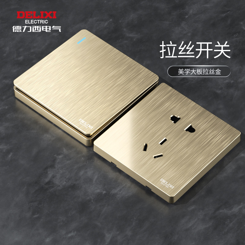 Delixi Switch Socket 86 Пять -отверстие USB -одно -открытое двойное двойное лицо скрытое панель из родного города Рисунок шампанское золото