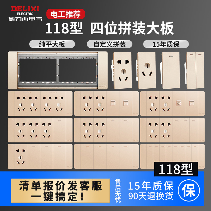 Delixi Switch Spocket 118 Официальный сайт Gold One One -Hole -Hole 16a Air -Conditioning Five -Hole Panel Panow