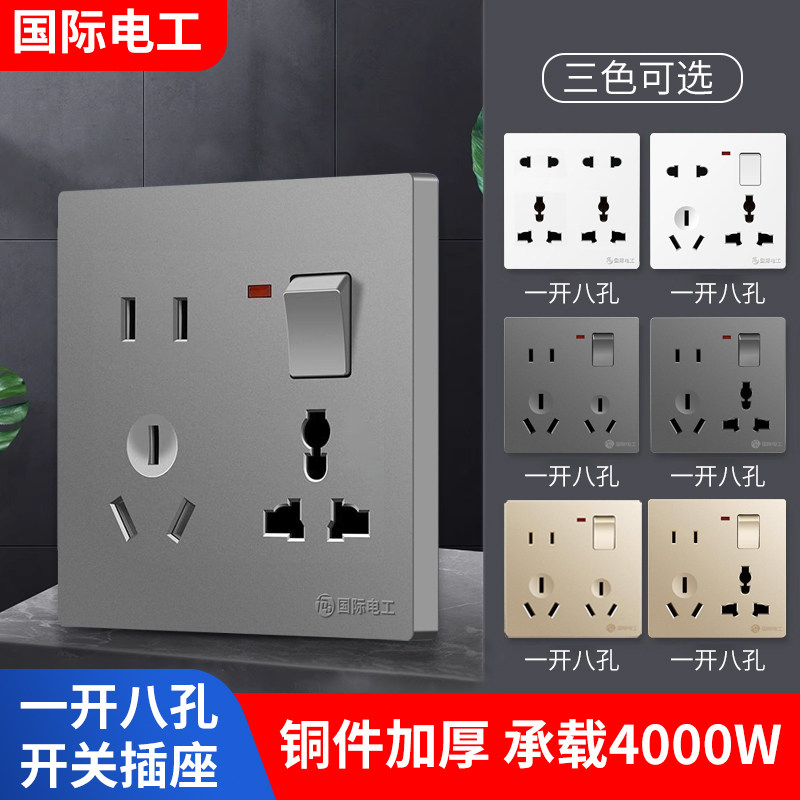 国际电工 Тип 86 Темная установка, 8 -я -отверстие, две -три -три штекатора много -дыры на стенах с открытой панелью