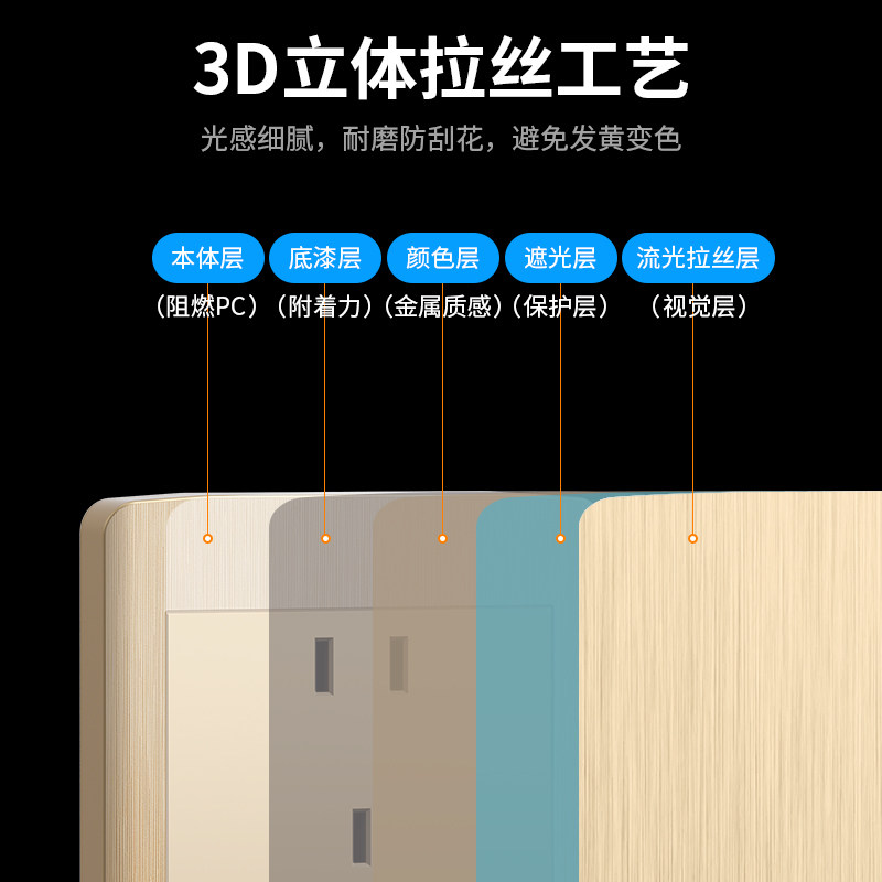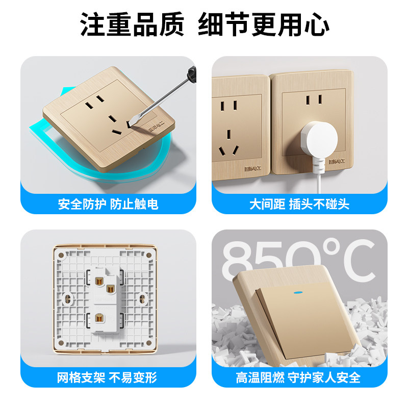 Международный электрический электрический 86 шампанский золотисто -рита -блот -блот -блот -двойной пенсионный участок Сломанная панель 16A Три полюса