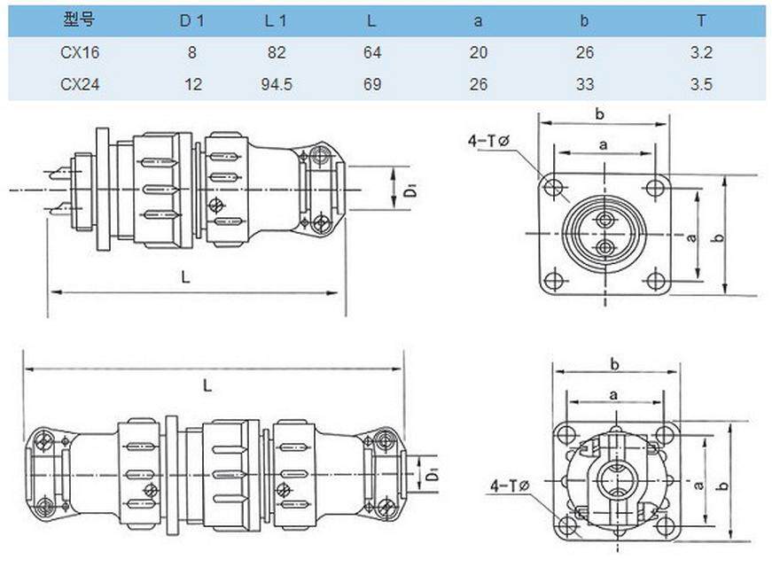 Серия квадратных разъемов CX16 подходит для электрических соединений механических и электрических линий мощности и управления. Существуют подключаемые устройства для предотвращения пыли и водонепроницаемости.Он подходит для электрических соединений различного фрезерного оборудования, особенно движущихся линий шлифовального слоя.Диаметр CX16 составляет 16 мм, а количество контактов3, 4, 5, 7, 9 ядерСущностьМетод подключения: тип потока, тип push -pull