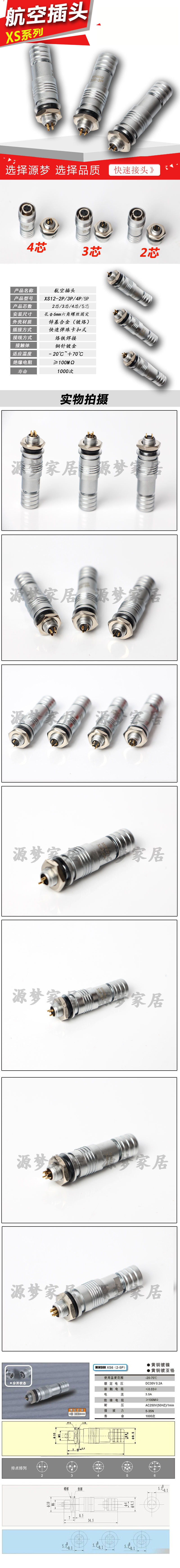 Водонепроницаемая авиационная заглушка XS6-2 Core 3 Core 4 Core 5-ядерное отверстие 6 мм/Push-Pull/Micro-Connecter быстро заглушка