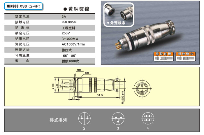 Aviation Plug xs8 Docking Connector Shell диаметром 8 мм имеет 8 мм