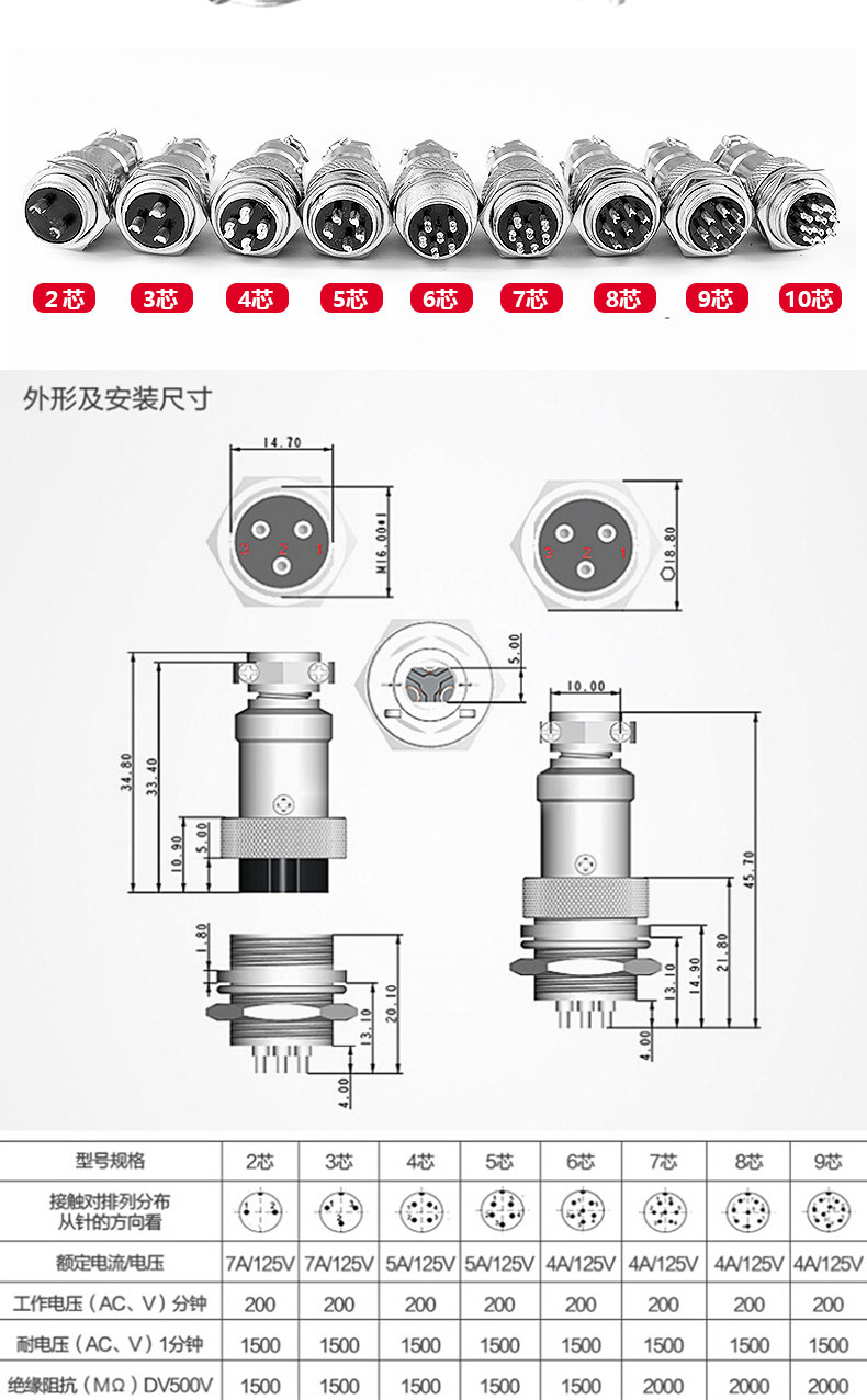 Авиационная заглушка GX16 Линия разъема 3/3/4/5/6/8/9/10 Разъем ядра 2 метра 20 см 20 см.