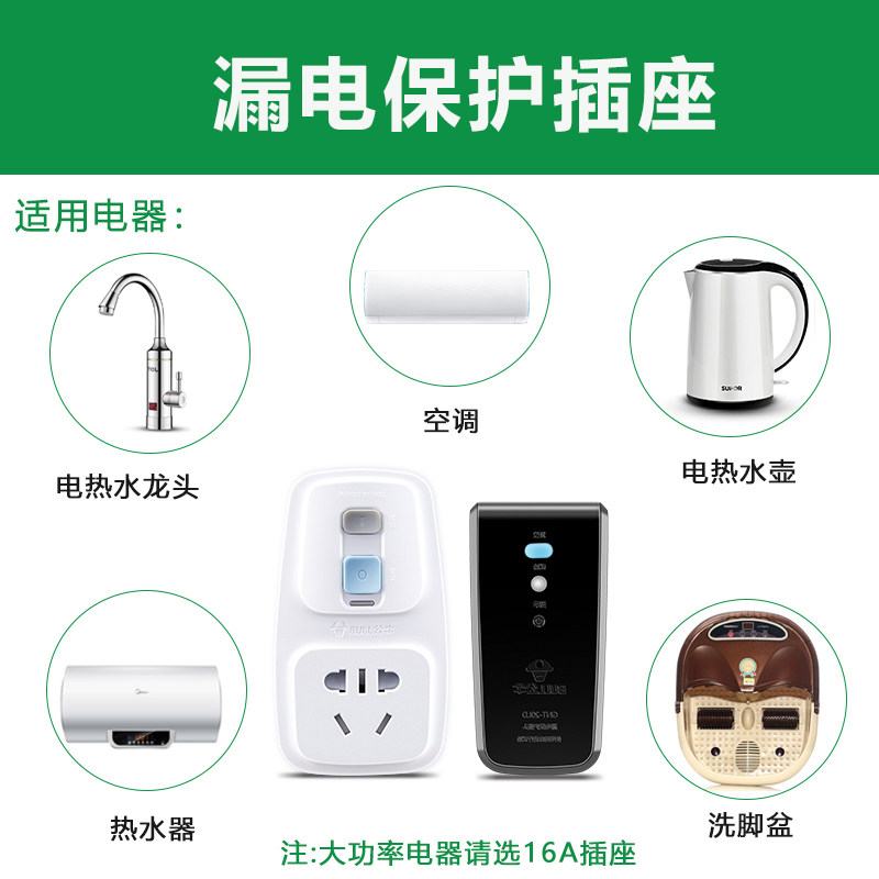 Защита от утечки быка Высокая мощность 16A Водонагреватель Электрический водопровод AIR -кондиционирование антиэлектрической штепсельной гнезда