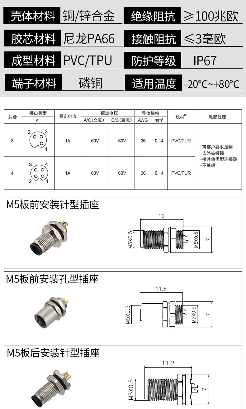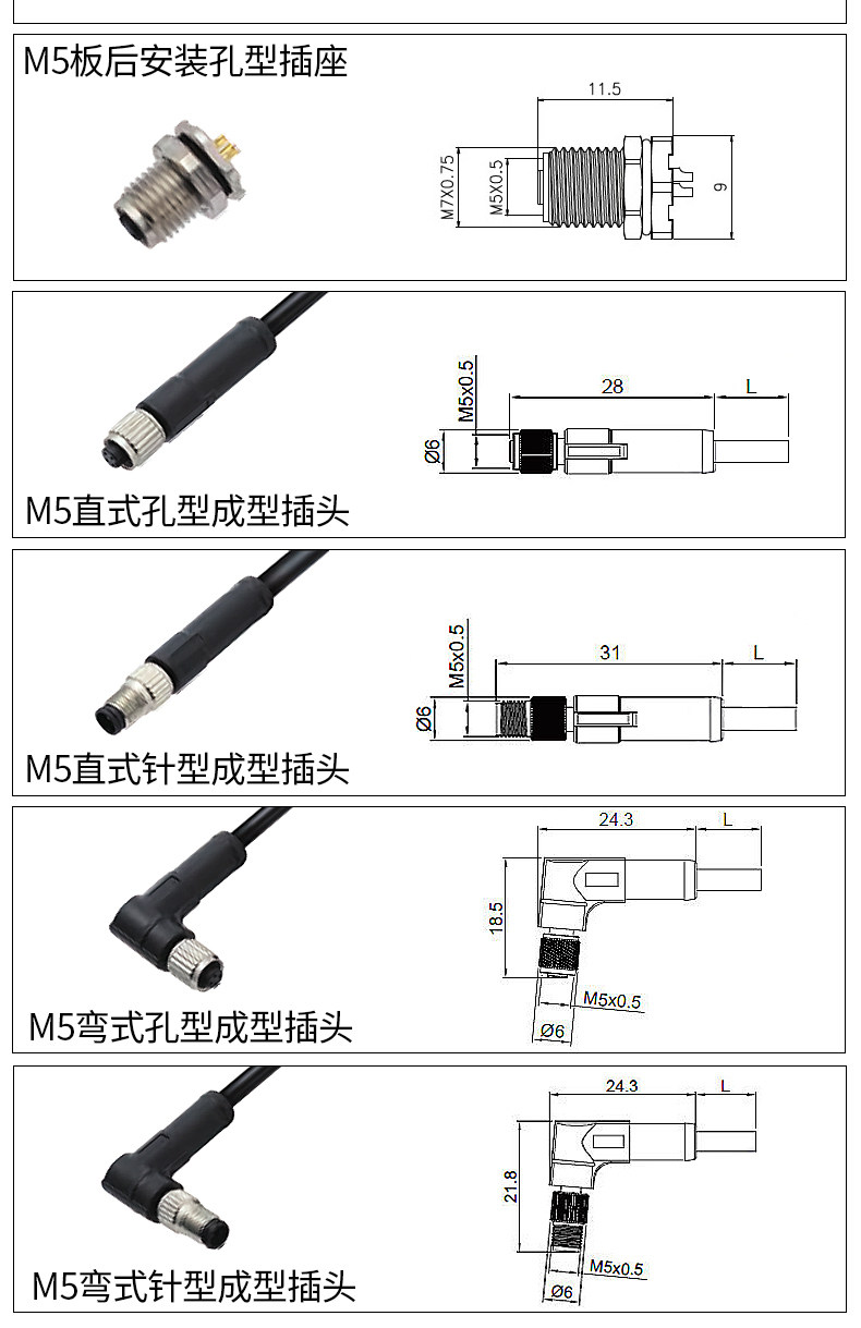 M5 Aviation Plugck Connector 3 Core 4 Core Head Head/Sensor Head Hear с водонепроницаемой линии/локтя