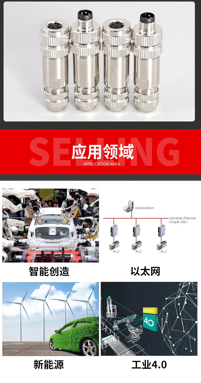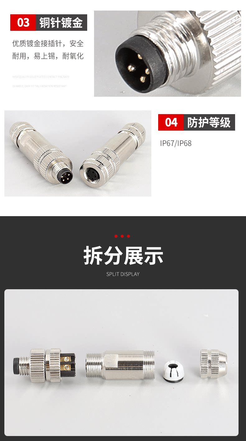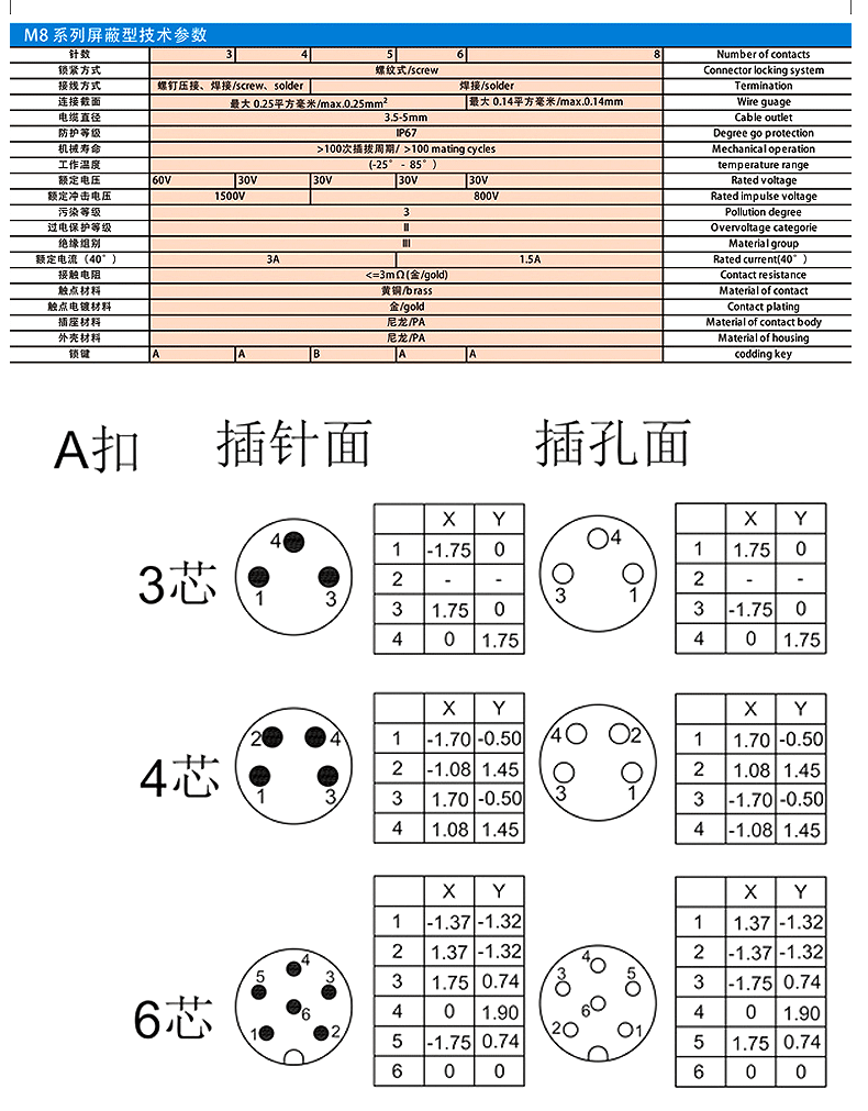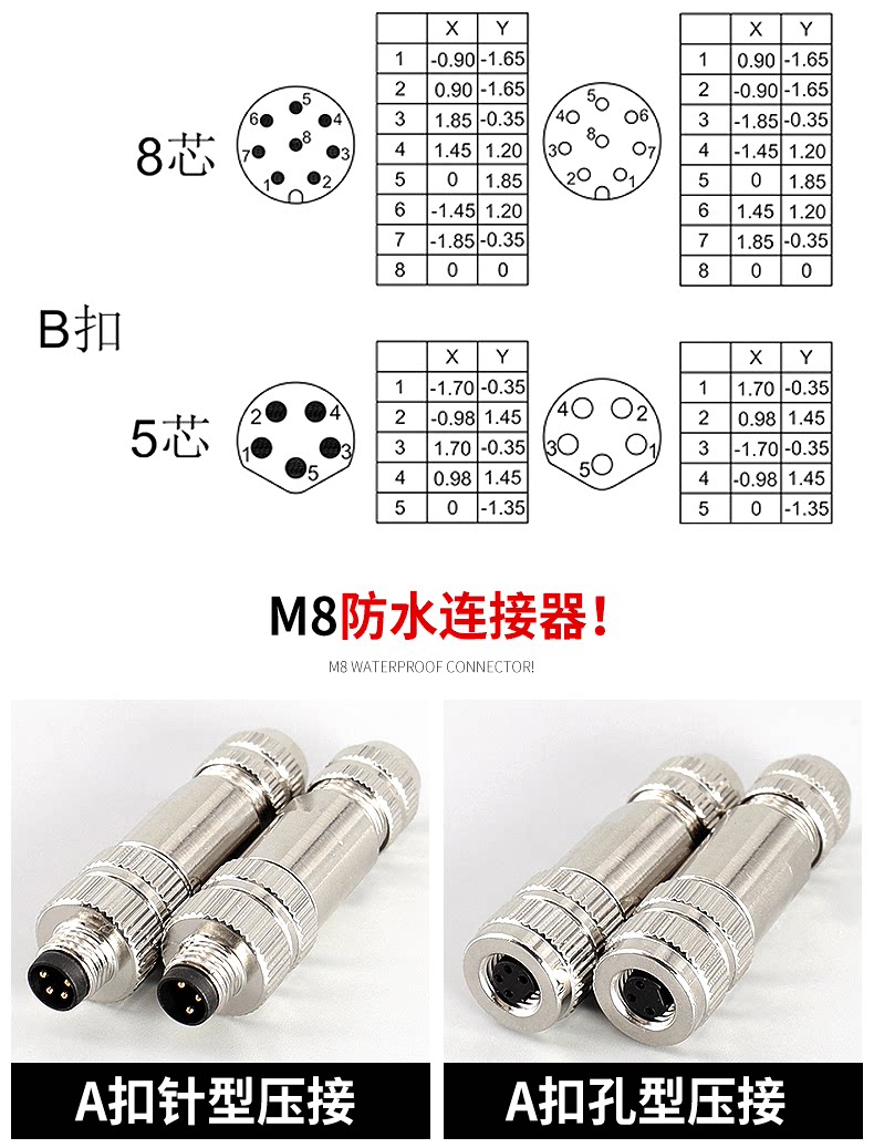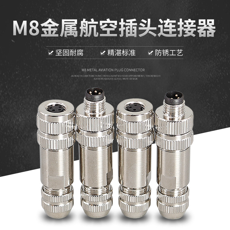 M8 Metal Shield Connector Connecting Blueg -In Socket Socket 3 Core 4 Core Date Connection