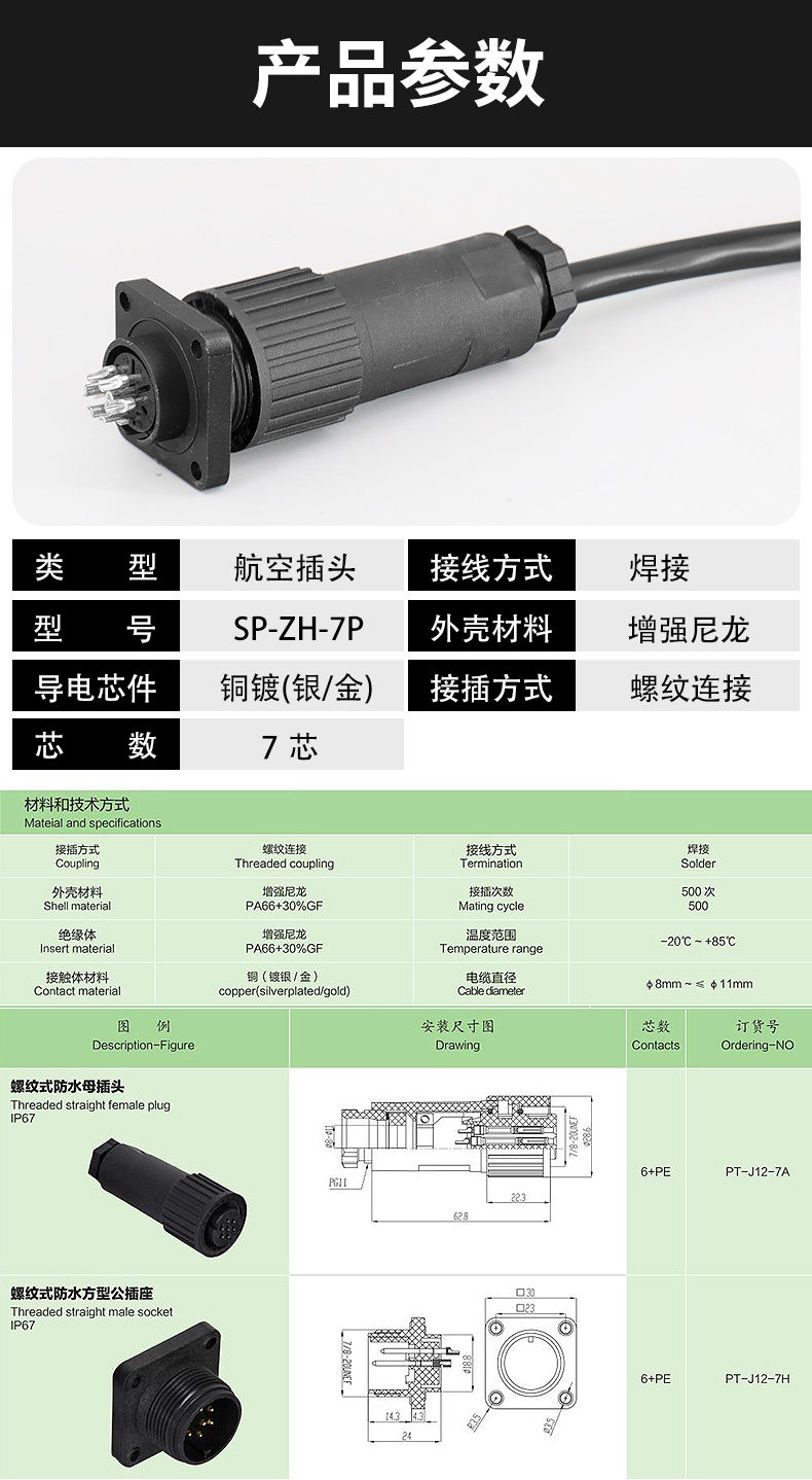 Aviation Plug Metal Connecter SP-ZH-7P-соотношение клапана давления давления клапаны 4 Core 7 Core