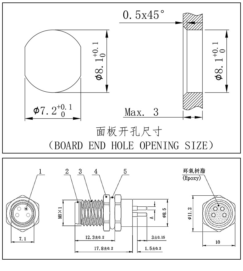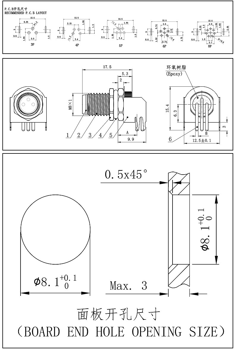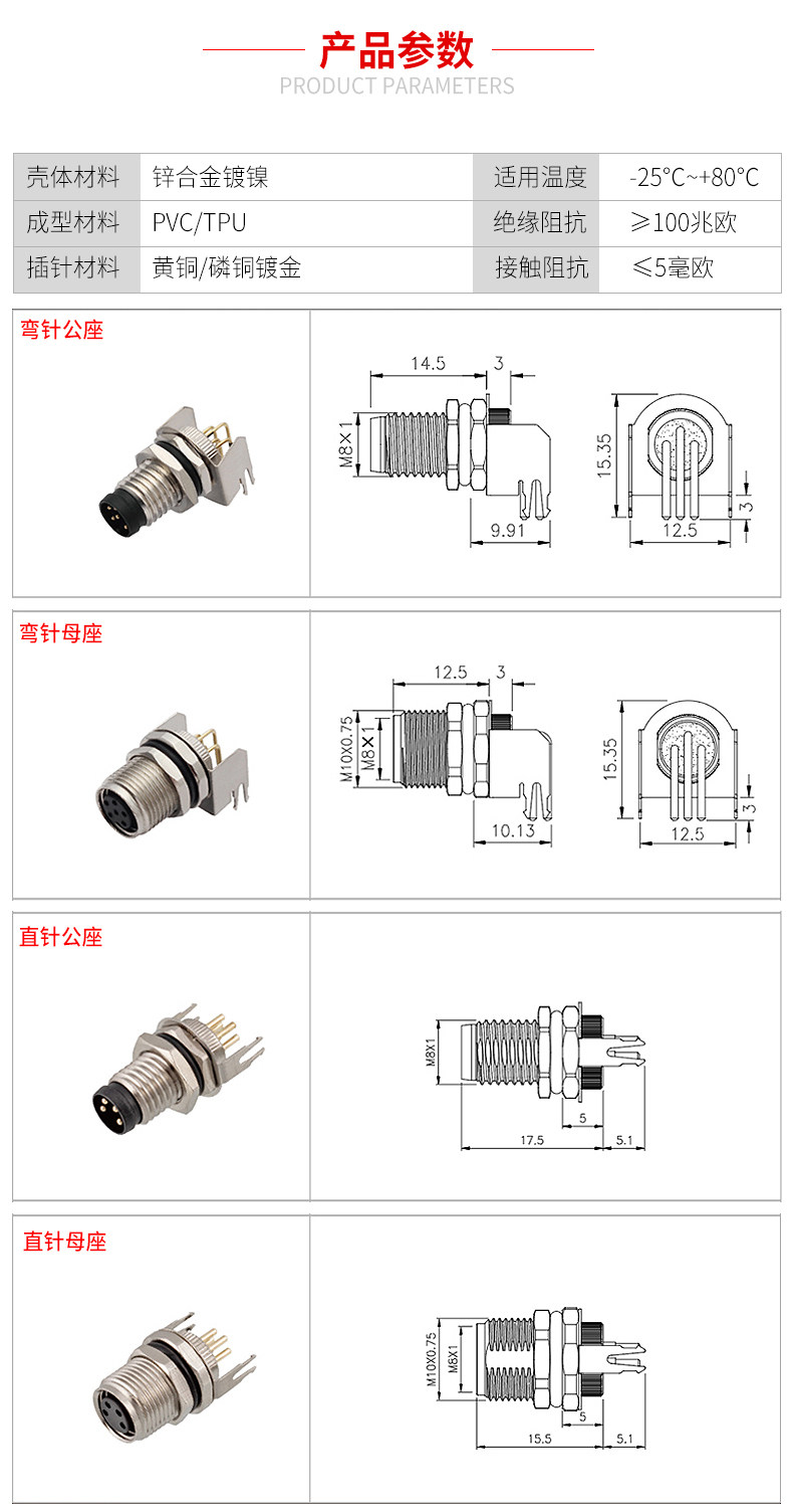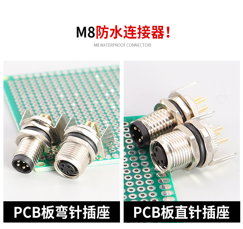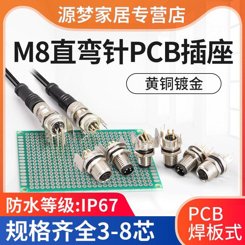 Авиационная штепсельная гнезда M8-3/4/5 Core 6-ядерный 8-ядерный 8-ядерный изгибающий иглу на 90 градусов сварной платы пластины водонепроницаемость