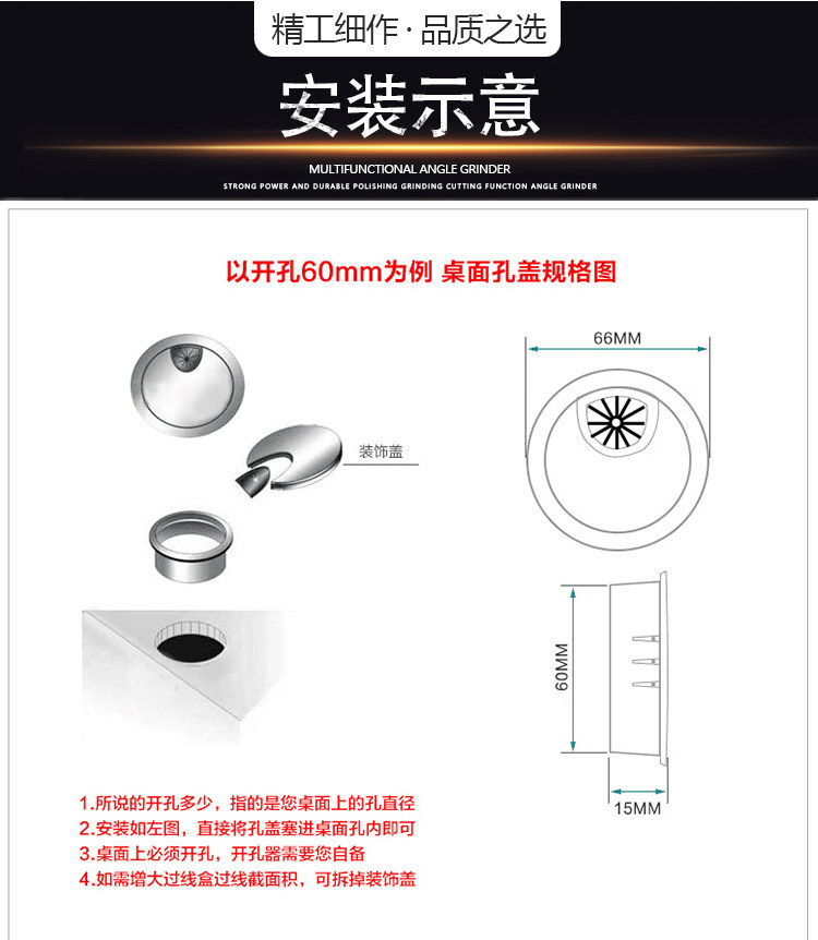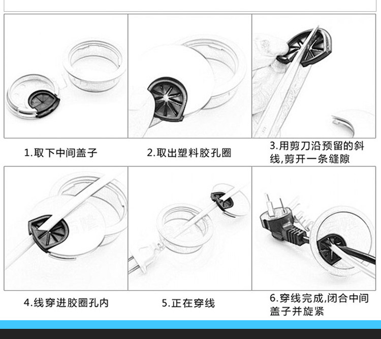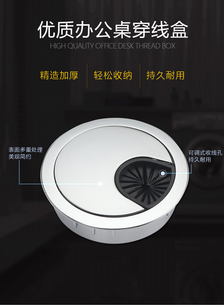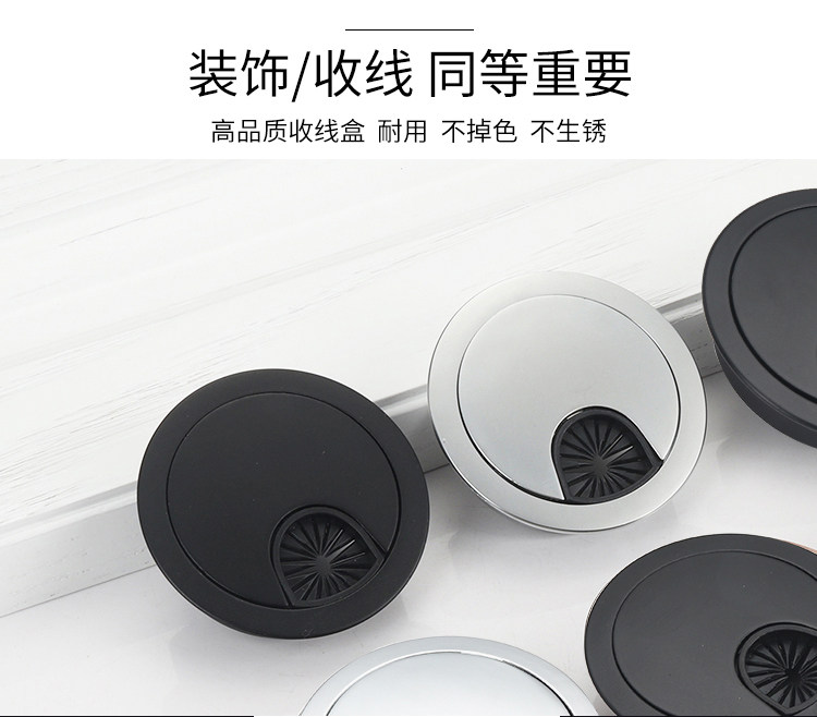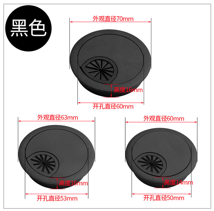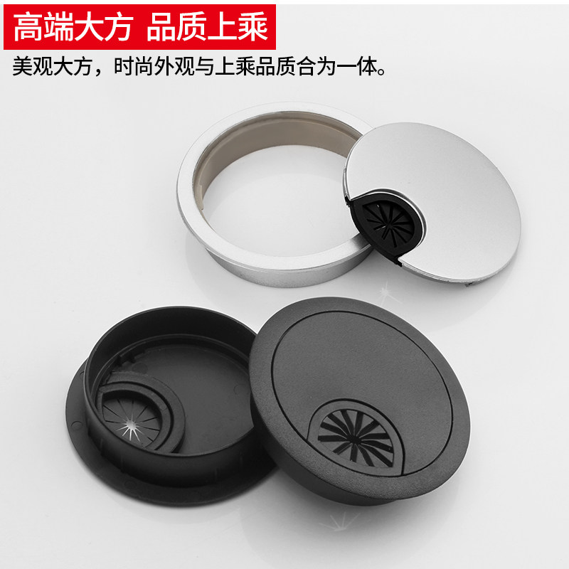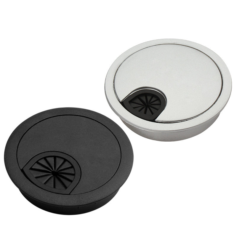 Черные круглые пластиковые отверстия для проводки, коробчатая крышка отверстия с проволочным отверстием компьютерного стола.
