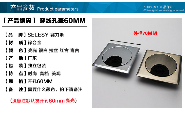 Сделайте покупки на тысячи пяти цветов цветового утолщенного цинкового сплавного сплавного стола, крышка полости, пирсинговая коробка компьютера, аккуратная декоративная крышка 60 мм