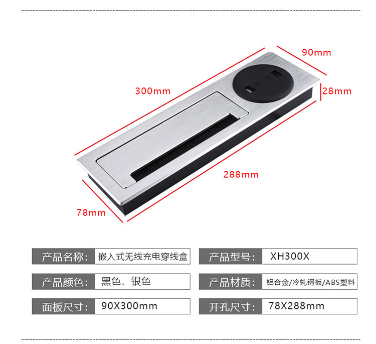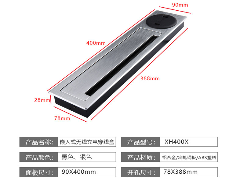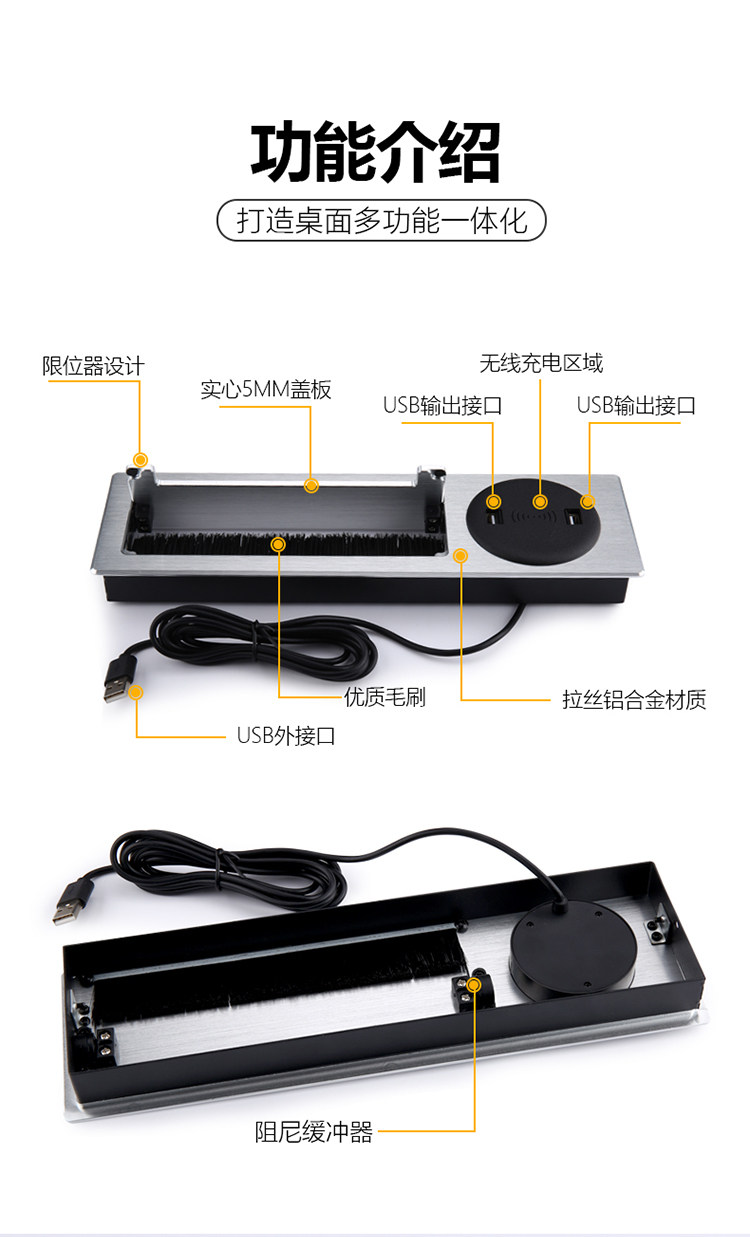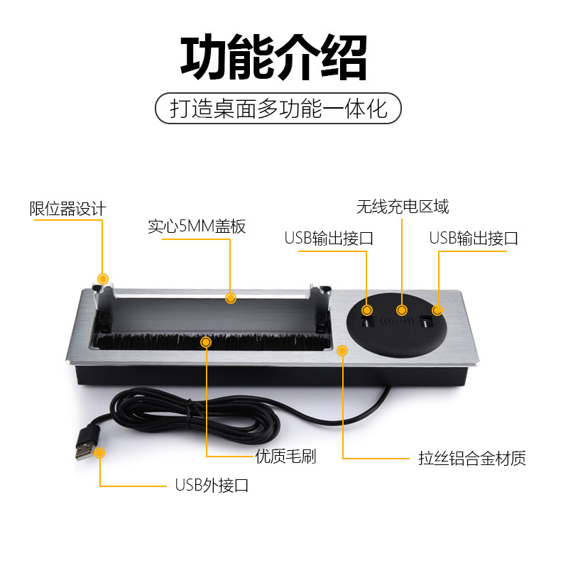 Буферный стол алюминиевого сплава Скрытый Слайд -Тип Гребца настольная мультимедийная беспроводная зарядка Многофункциональная линейная коробка