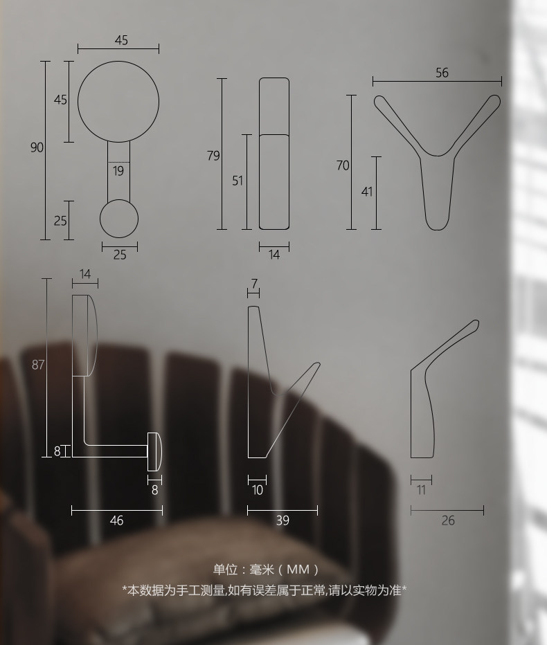 Легкий роскошный стиль одиночная одежда, стена крючка на стене настенные настенные удары с крючком с крюком с крюком с крюком